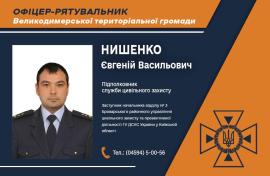 У рамках посилення системи цивільного захисту за Великодимерською територіальною громадою закріплено трьох офіцерів-рятувальників ДСНС. Наші представники: Нишенко Євгеній Васильович …