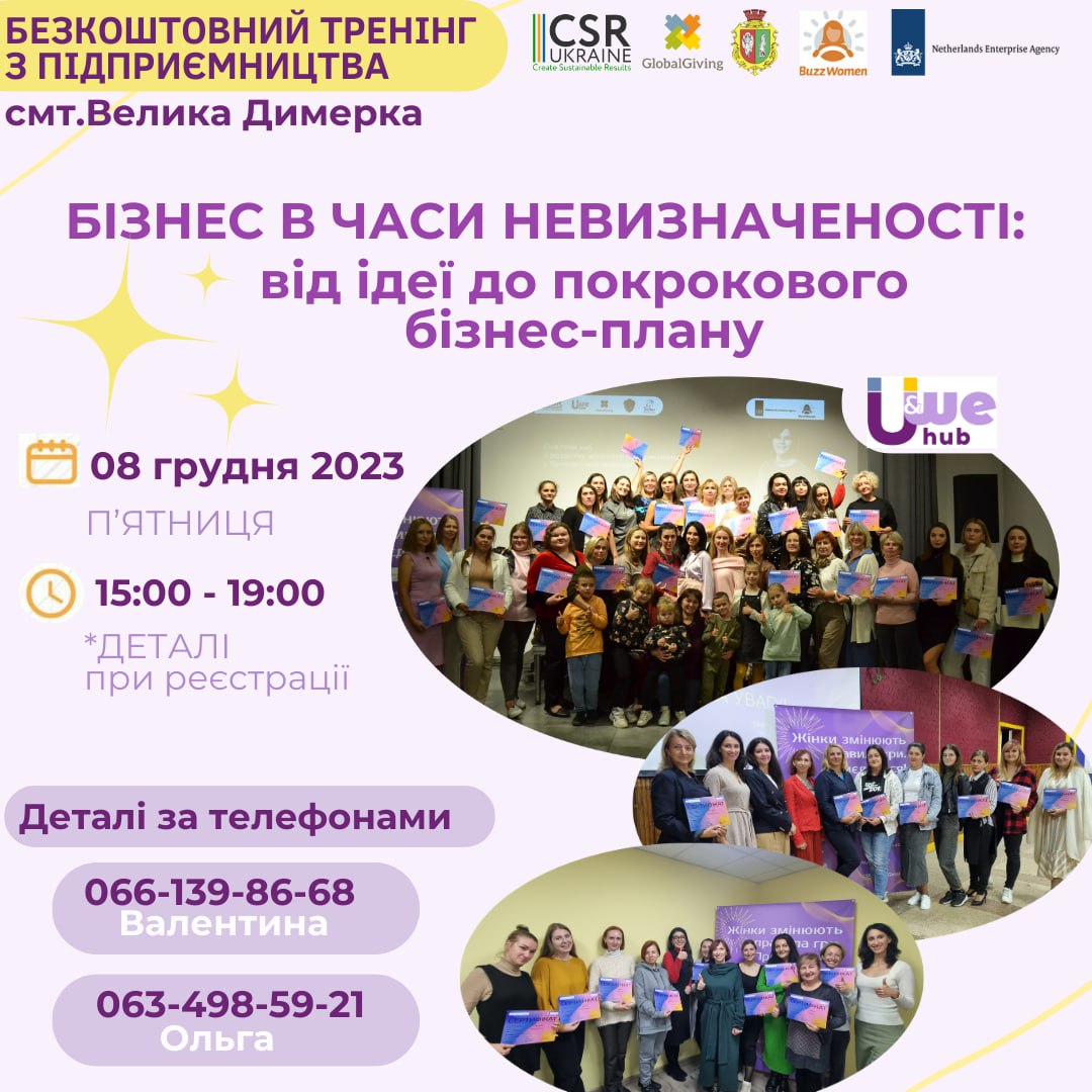Долучайтесь до тренінгу з підприємництва від U&We Hub у Великій Димерці, щоб: