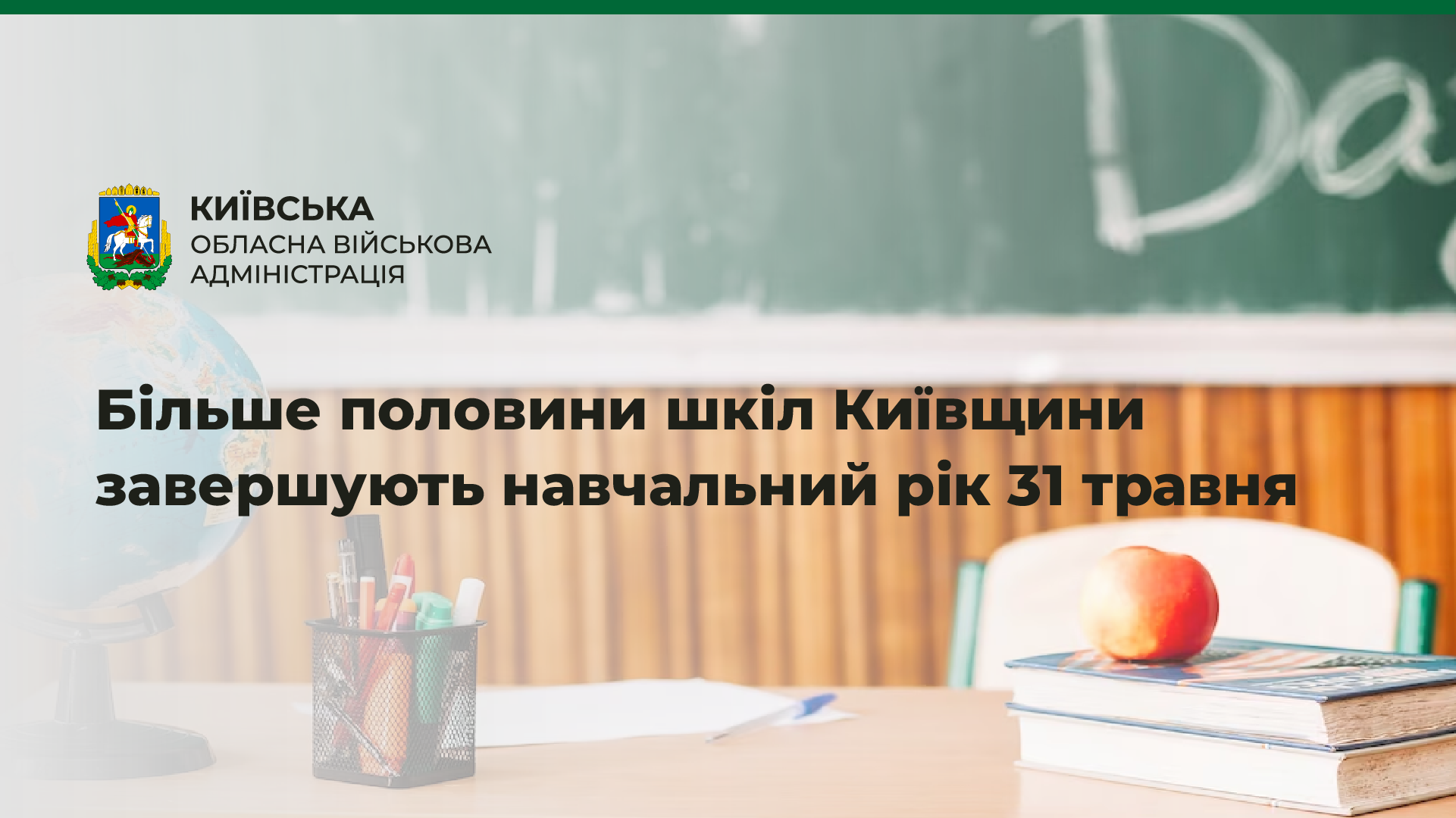 Цього року освітні заклади Київської області завершують навчальний 2022/2023 рік з урахуванням пропущених днів через обстріли та відсутність електроенергії. Про це повідомив голова Київської ОВА Руслан Кравченко на своїй сторінці у Facebook.