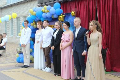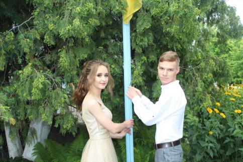 26 випускників вийшли перед численною тарасівською публікою, бо ж такий день – то за традицією не тільки для Тарасівки – загальносільське свято, з-за куліс, у які з фантазією, творчим підходом перетворили знайомий їм до болю вхід до навчального закладу. Вони пройшли колом пошани подвір'я і зайняли свої місця на імпровізованій сцені, роль якої грав шкільний ганок. Там розташували рівно 26 стільців, до спинки кожного з них прив’язали кульку – синю чи жовту. Лунав гімн, і двоє з 26-ти – Аліна Костриця та Владислав Власенко підняли наш прапор.