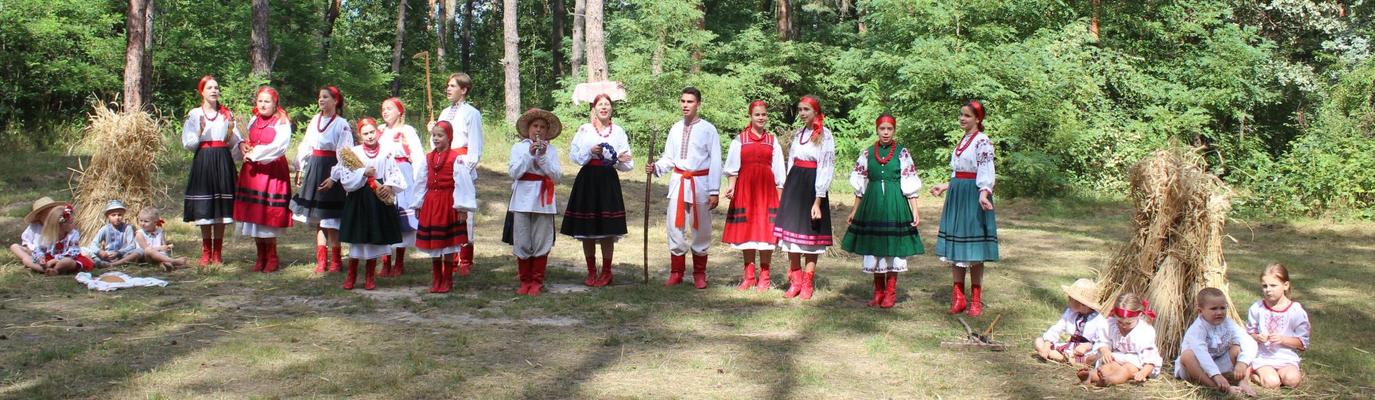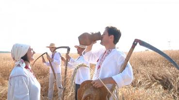 Як зараз модно говорити – воно відбувалось у двох різних локаціях. Власне, як і свого часу в реальному житті. Чоловіки та жінки, одягнувшись у традиційні українські сорочки, які свого часу не вважались одягом вихідного дня, а були для щоденного вжитку, вийшли у поле. Де колос вже налився спільним зерном. Чоловіки хвацько махли косами, жінки в’язали снопи.