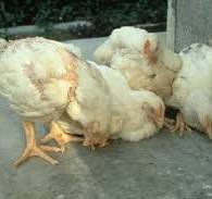 Ознаки: Лихоманка, сонливість, скуйовджене пір’я, слиз із дзьоба, звук клекотання при вдиху, кашель, кон’юнктивіт, чхання. Пізніше з’являється пронос, іноді з кров’ю. У багатьох птахів (особливо молодняка) настає параліч ніг, крил, скручування шиї.