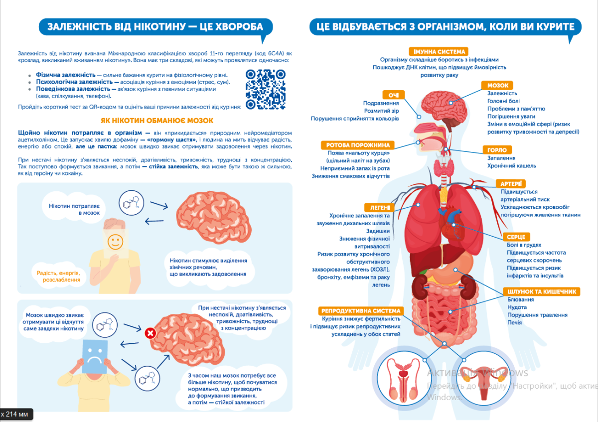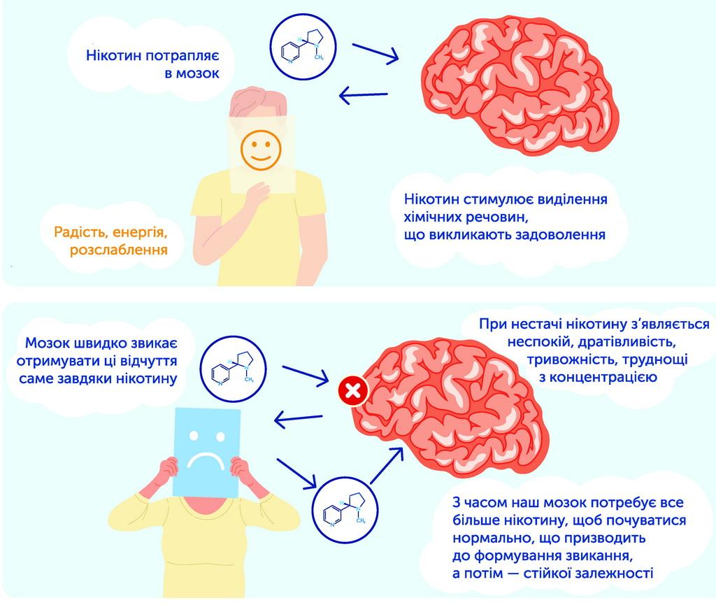 Вся ключова інформація на картинках. Перегляньте їх та дізнайтеся, як нікотин впливає на організм.