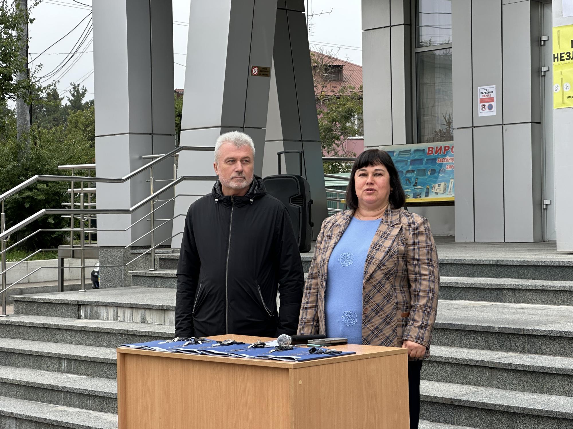 Ключі та документи на автобус отримали заступник селищного голови Олександр Рубанка та директор Великодимерського ліцею Тетяна Філіпова.