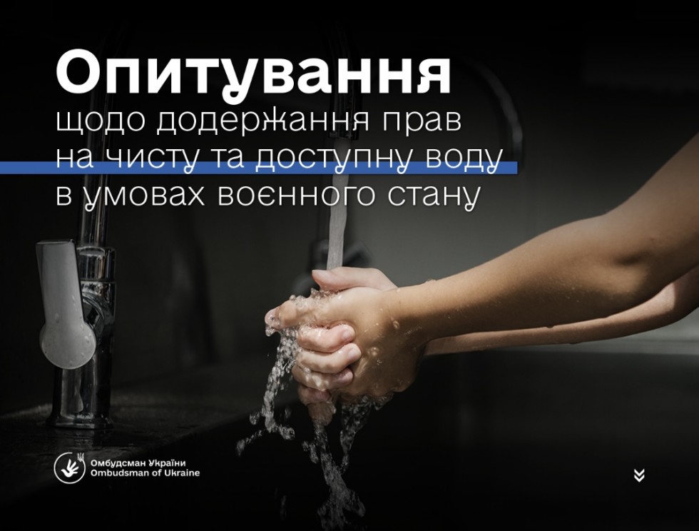 У межах підготовки Спеціальної доповіді «Про стан додержання прав громадян на чисту та доступну воду в умовах дії правового режиму воєнного стану» ми проводимо опитування серед громадян — споживачів послуги централізованого водопостачання.