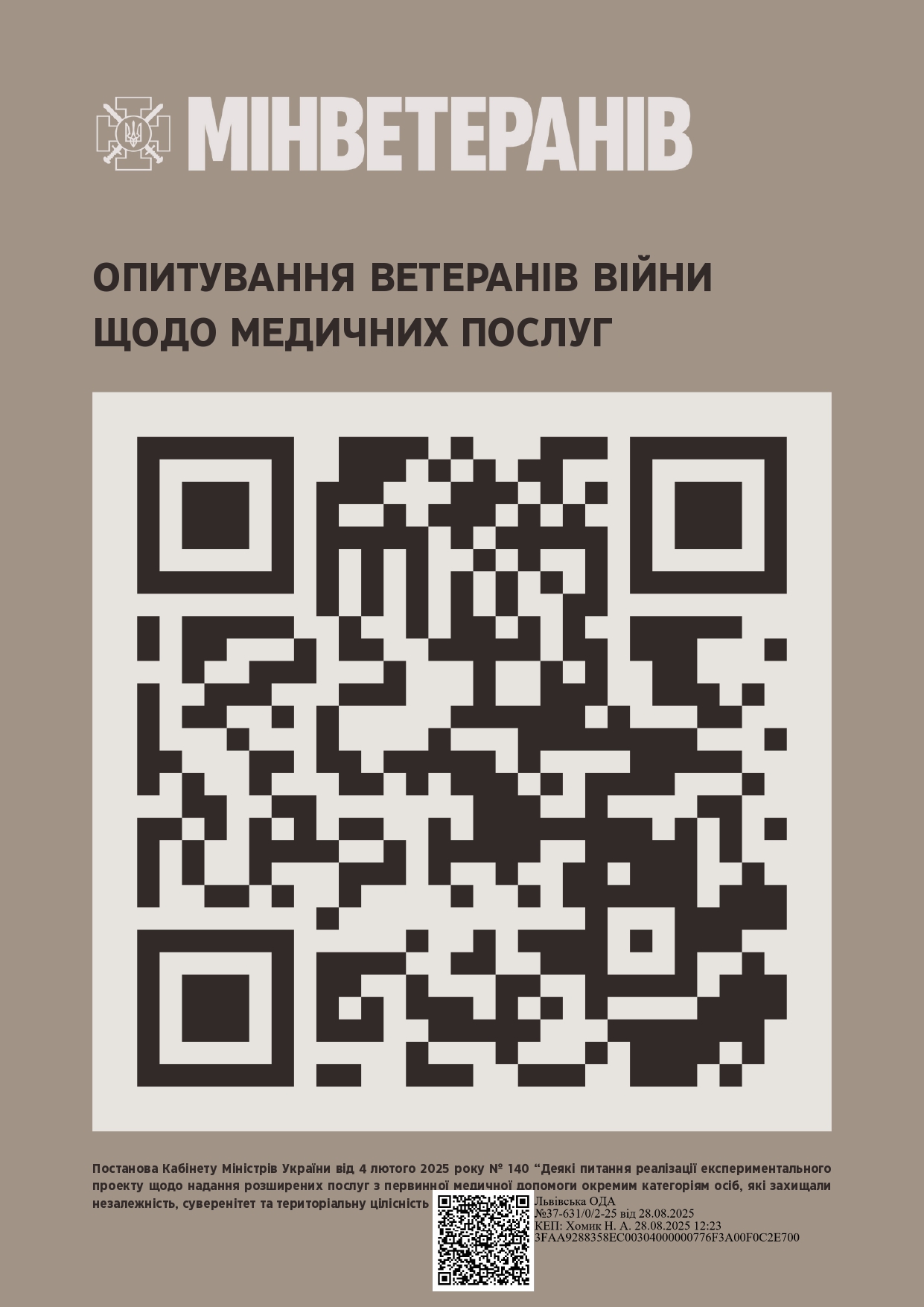 Згідно з постановою Кабінету Міністрів України № 140 реалізується експериментальний проєкт із надання розширених послуг з первинної медичної допомоги ветеранам війни.