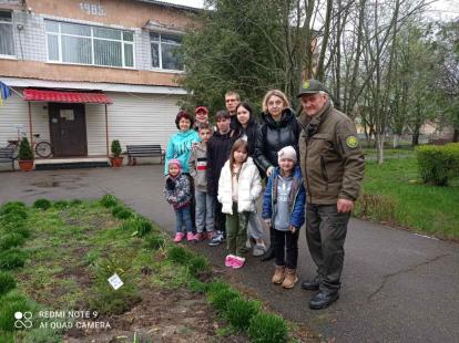 Представники «Залісся» - В.Смаголь, Н.Чіркова, В. Ужвенко - багато спілкувалися з дітьми , розповідали їм про національний парк, про значення зелених насаджень, як правильно висаджувати та доглядати за саджанцями, зокрема хвойних. Також гості подарували дітям напередодні Пасхи солодощі та фрукти.