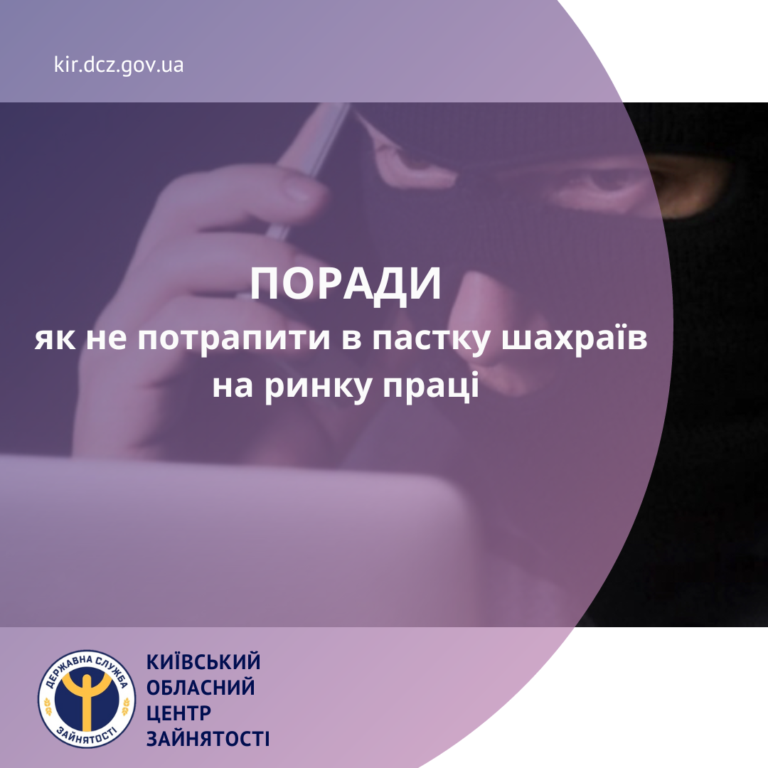 Щоб не потрапити у тенета горе-працедавців, шукайте роботу за сприяння Київської обласної служби зайнятості. Контакти – за посиланням http://surl.li/clyqi