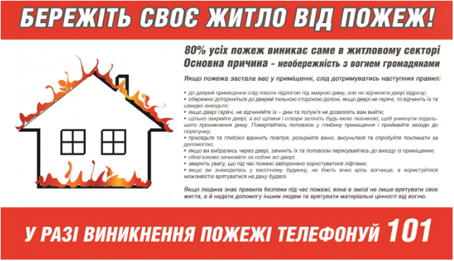 При виникненні пожежі негайно викликайте рятувальників за номером телефону «101», адже кожна хвилина у цій ситуації має вирішальне значення!