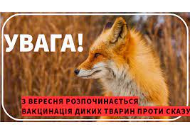 Розповсюдження принад з вакциною проти сказу буде проводитись літаками над територіями лісових та сільськогосподарських угідь з 15 по 20 вересня (в залежності від погодних умов).