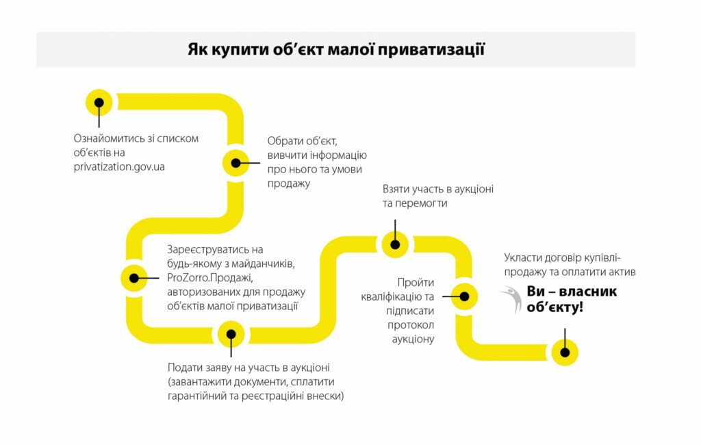 Продаж об’єктів відбувається онлайн в системі Прозоро.Продажі, що гарантує доступ до аукціонів для всіх охочих та виключає можливість маніпуляцій.
