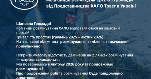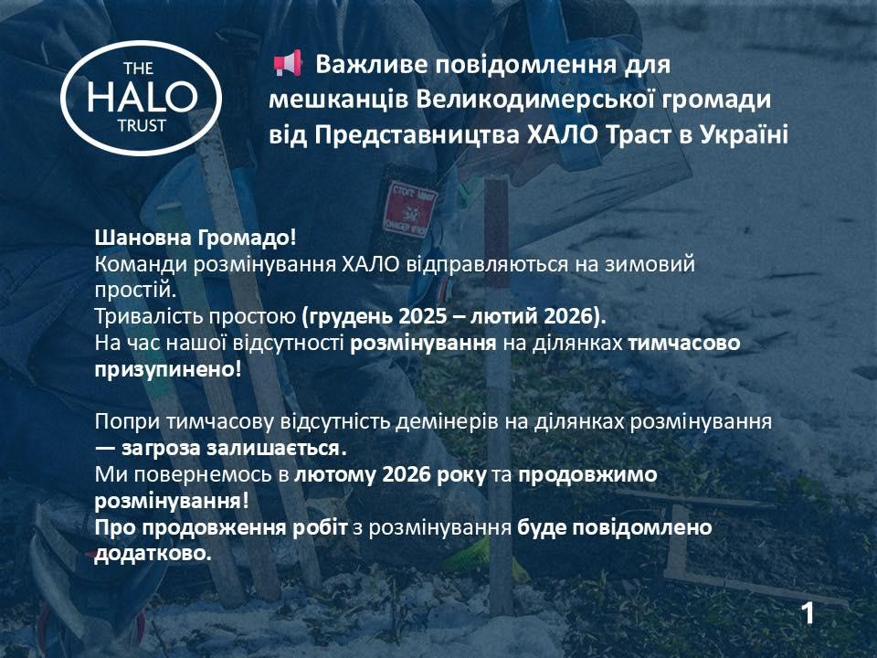 Ми повернемось в лютому 2026 року та продовжимо розмінування!