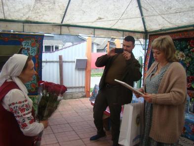 Гості вручили ювілярці квіти, вітальну адресу та пам’ятний подарунок. Олеся Рогач наголосила, що Ніна Іванівна багато років віддала громадській діяльності, служінню культурі, освіті, вихованню молодого покоління, своєю високою майстерністю художньої вишивки постійно зміцнювала імідж району, області в Україні. Чого вартий лише вишитий разом з колегою семиметровий рушник Броварського району.