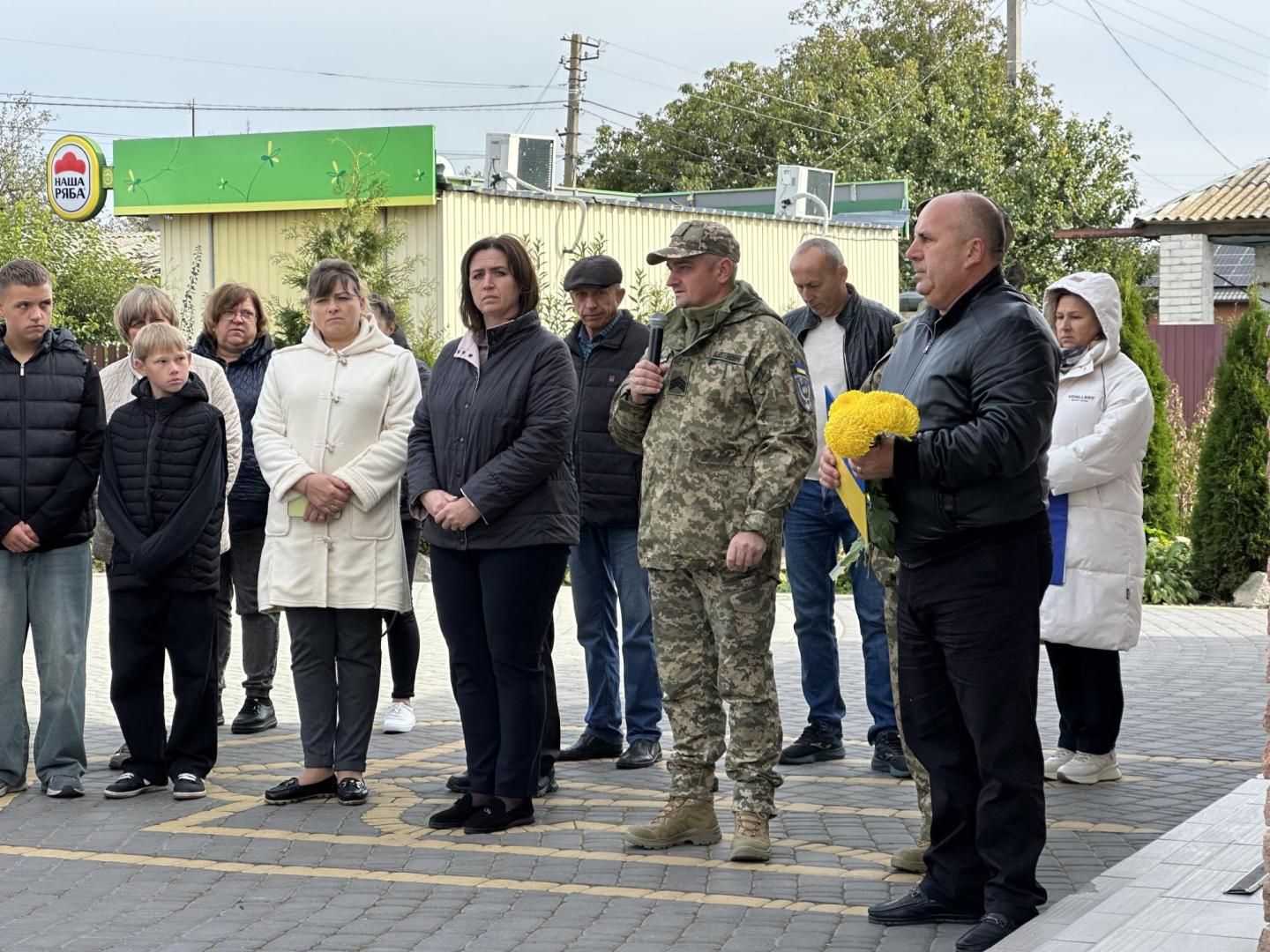 «Це дуже важлива подія для нашого села, тому що людина, яка була мобілізована, віддала найдорожче — своє життя. Хочу подякувати мамі за те, що виховала справжнього патріота, справжнього чоловіка та справжнього Героя».