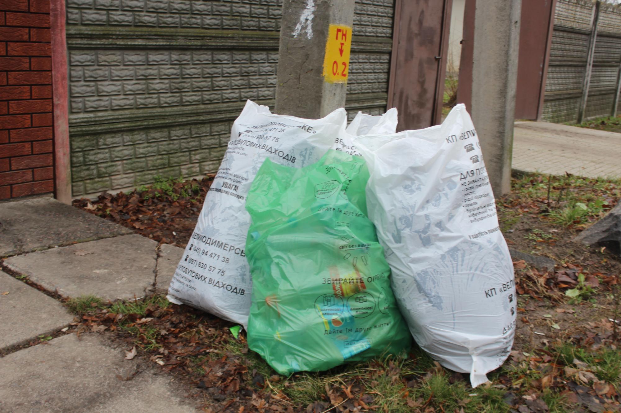 У магазинах ви за 100 гривень купляєте послугу - вивезення побутового сміття. До цієї суми входить чотири брендовані пакети, кожен з яких вмістимістю по 140 літрів. Плюс п’ятий – прозорий, для збирання пластику.