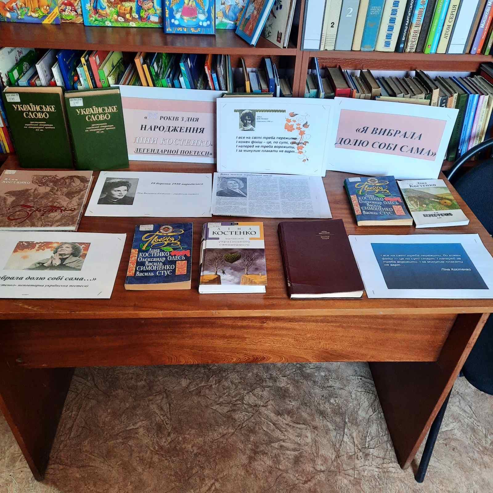Великодимерська селищна бібліотека запрошує відвідати книжкову виставку з нагоди 95-ти річчя легендарної української поетеси Ліни Костенко під назвою "Я вибрала долю собі сама..."